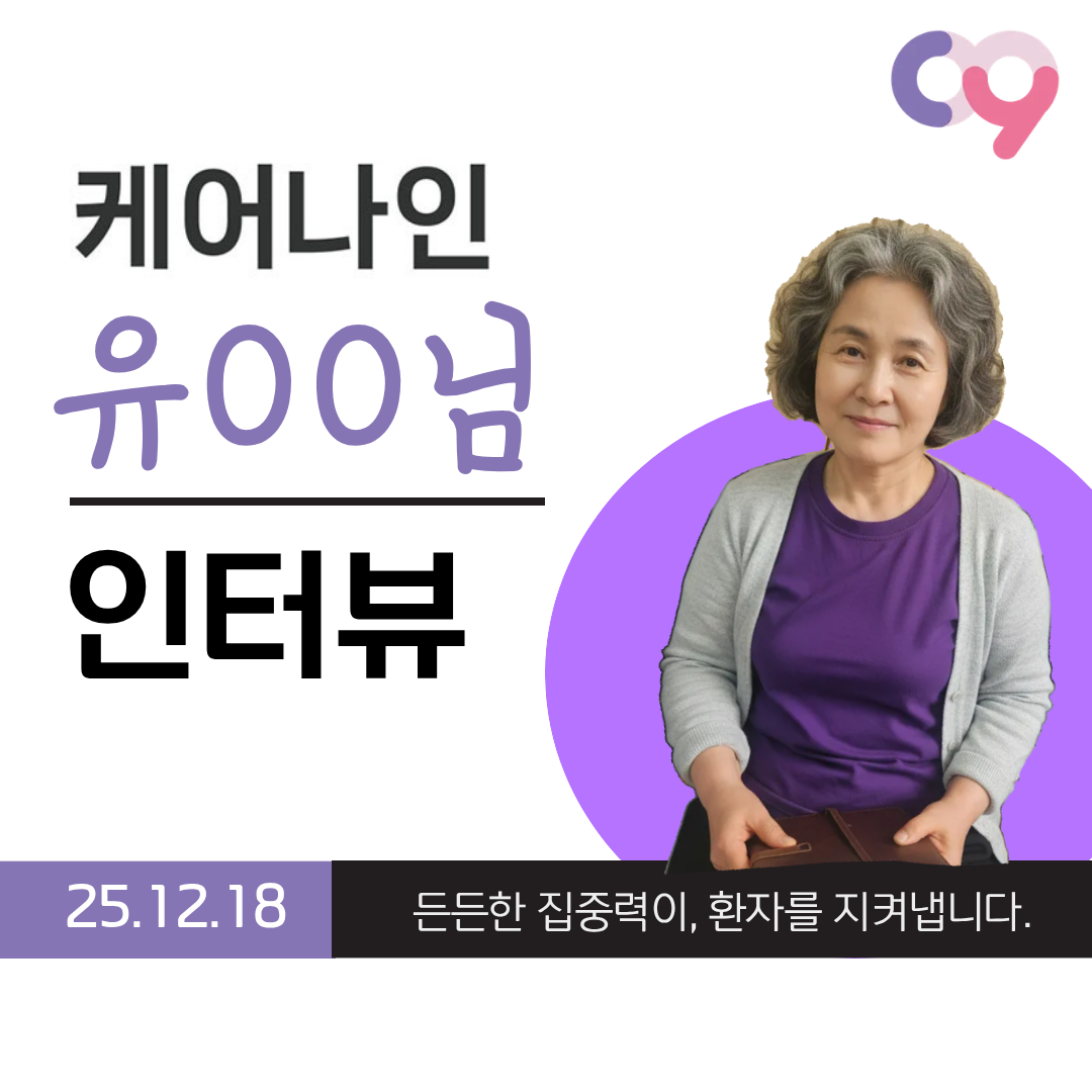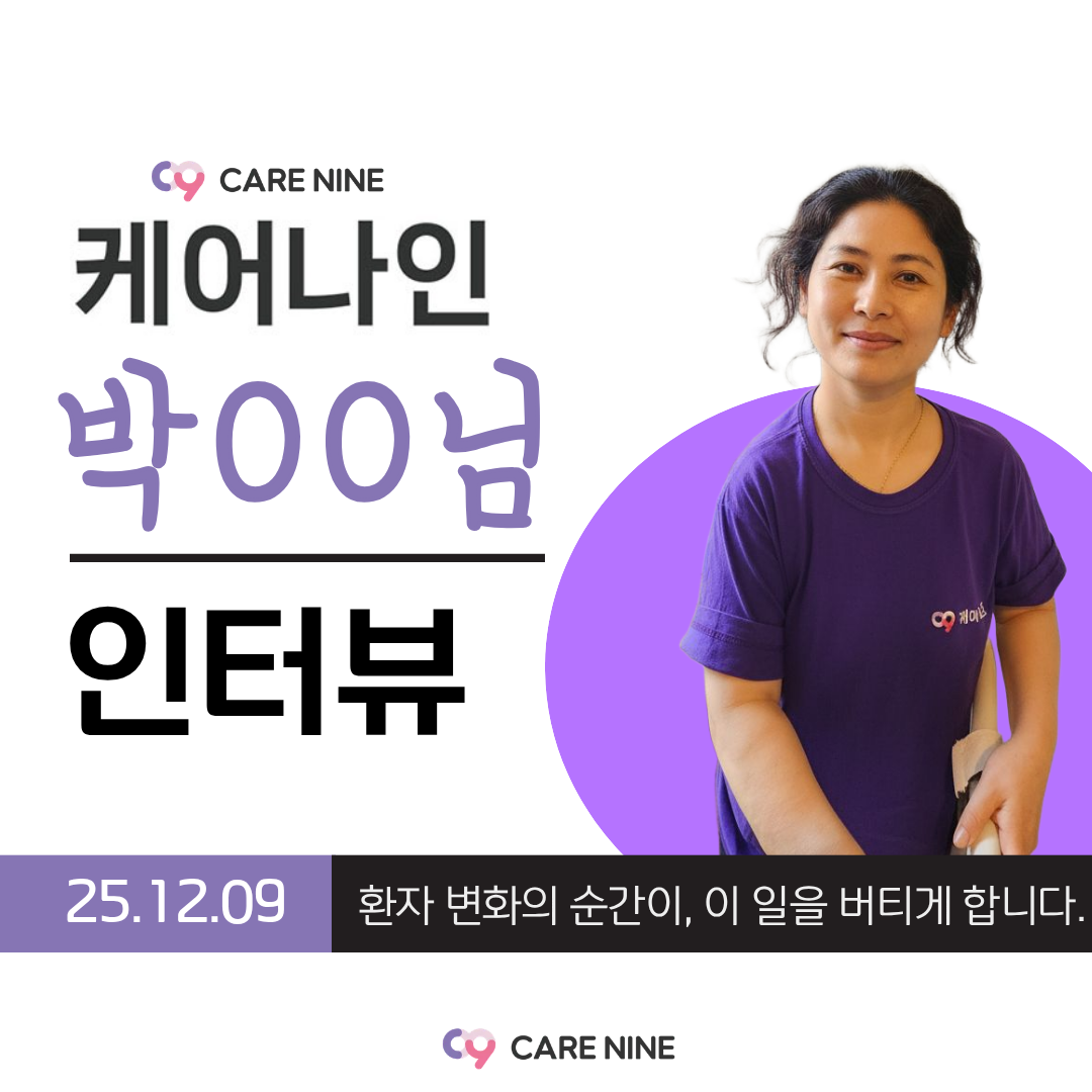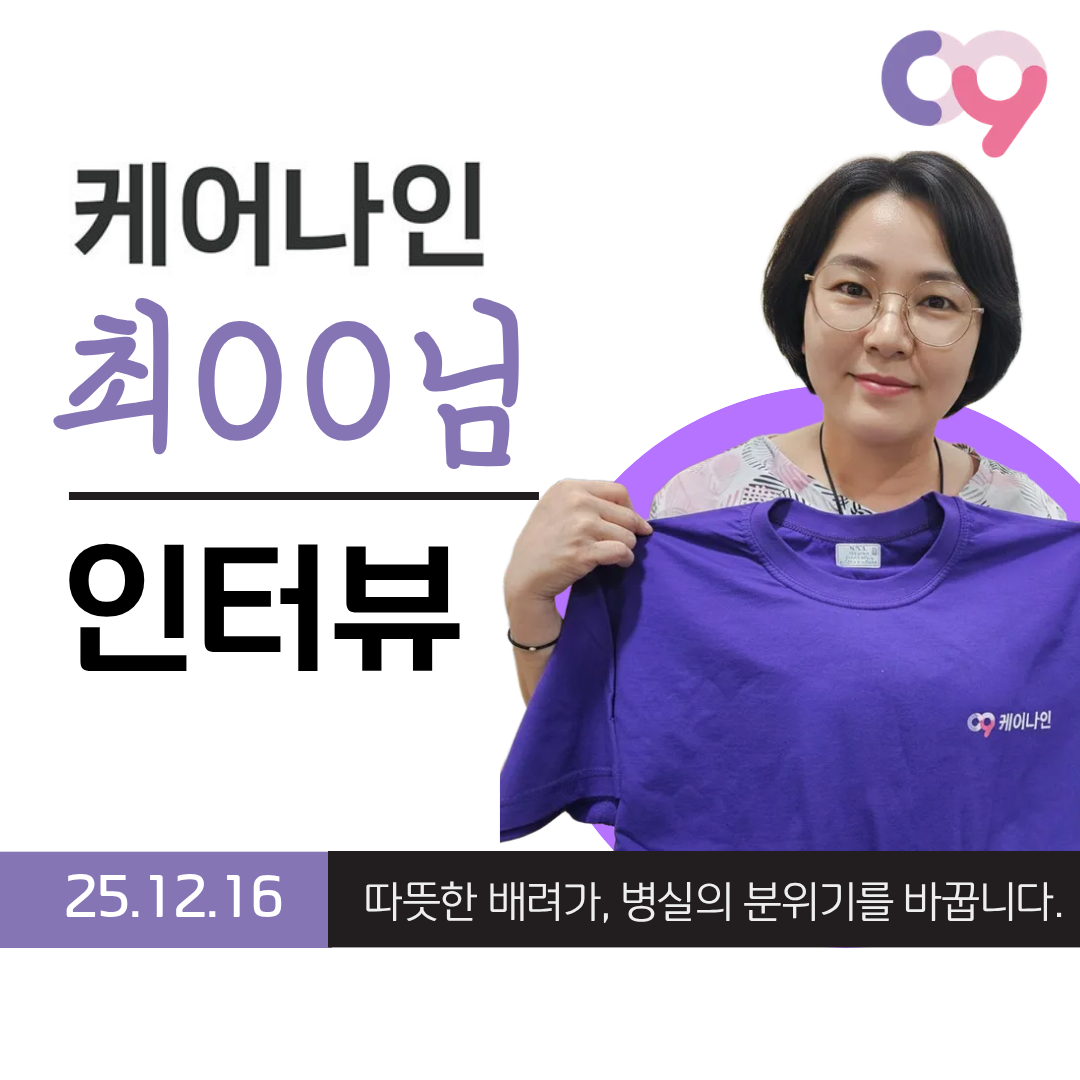 [ 25.12.16 케어나인 간병인 후기 ] 이대서울병원 최OO[ 25.12.16 케어나인 간병인 후기 ] 이대서울병원 최OO 따뜻한 배려가, 병실의 분위기를 바꿉니다. 최OO 간병인님 근무처 : 이대서울병원 나이 58세 / 자격증 : 요양보호사 간단한 자기소개 안녕하세요, 이대서울병원에서 근무 중인 58세 최OO 간병인입니다. 차분한 목소리와 선한 인상으로 환자분이 편안함을 느끼실 수 있도록 곁을 지키며, 항상 좋은 마음으로 성의껏 돌보는 간병을 중요하게 생각하고 있습니다. 조용하고 안정적인 태도로 환자와 보호자분들께 신뢰를 주는 분이에요. 한국으로 귀화한 뒤 현장 경험을 차근차근 쌓아왔고, 환자분의 상태에 맞춰 세심하게 배려하는 케어가 인상적인 간병인님입니다. “케어나인과 함께 느끼는 간병의 성취” ✔ 환자와 보호자가 따뜻하게 대해줄 때 ✔ 환자 상태가 점차 좋아지는 변화가 보일 때 ✔ 건강을 되찾아 병실을 나설 때 이 일을 계속하게 만드는 보람을 느낀다고 하셨어요. 케어나인 간병인 Real Interview Q. 근무하면서 가장 어려웠던 순간은 언제였나요? A. 섬망이나 치매 환자분이 깨어 있는 동안 계속 소리를 지르거나, 해줄 수 없는 요구를 반복하실 때가 가장 힘들었어요. 그래도 환자분을 대할 땐 늘 좋은 마음으로, 배려하며 최선을 다하려고 합니다. Q. 케어나인을 이용해보니 어떠셨나요? A. 앱으로 검색해서 가입했는데 친절했고, 금액도 만족스러웠어요. 간병인을 많이 배려해주는 느낌이라 앞으로도 계속 이용하고 싶어요. Q. 앞으로의 계획은 어떻게 되시나요? A. 일거리를 더 많이 받아 꾸준히 일하고 싶어요. 케어나인과 오래 함께 일하길 희망하고 있습니다.