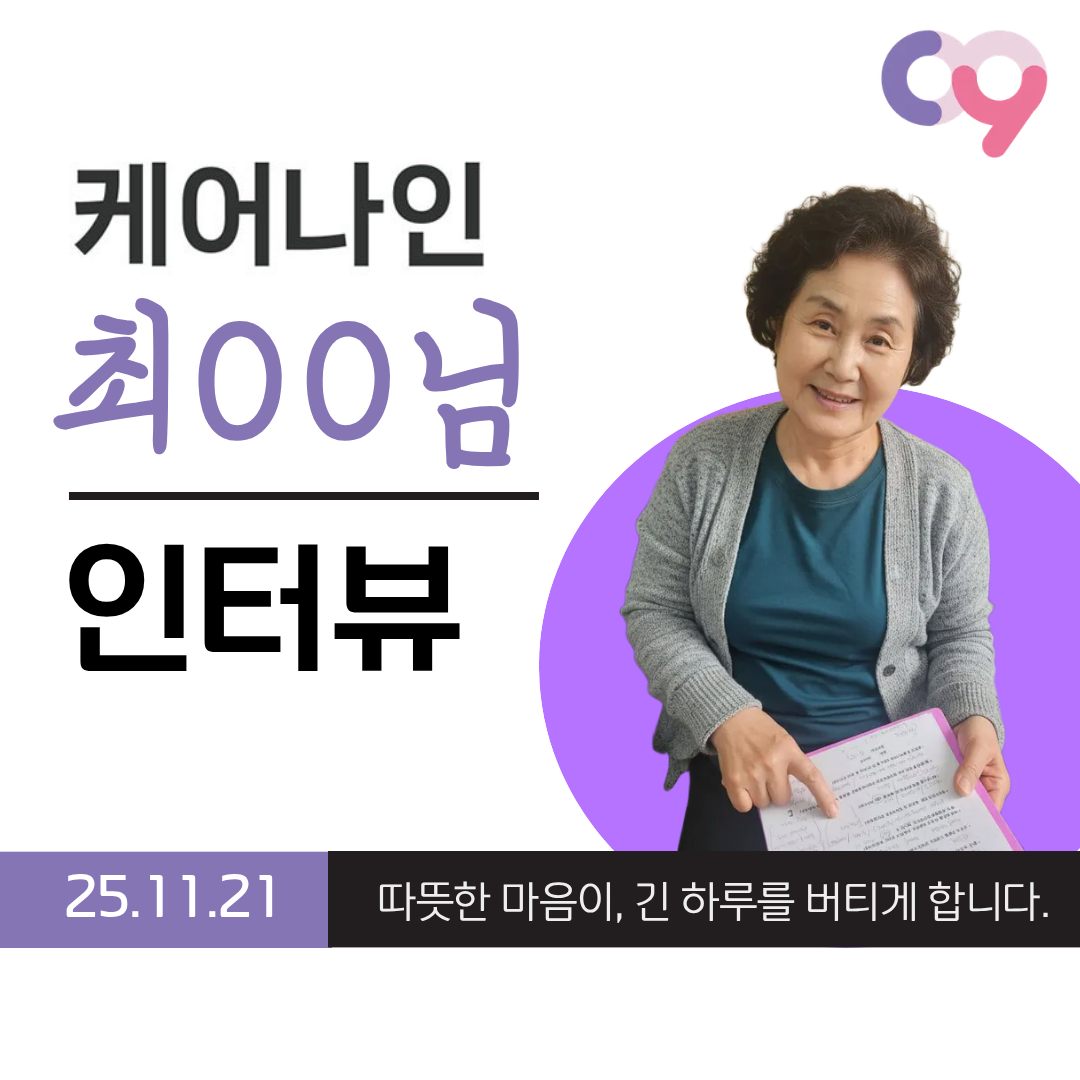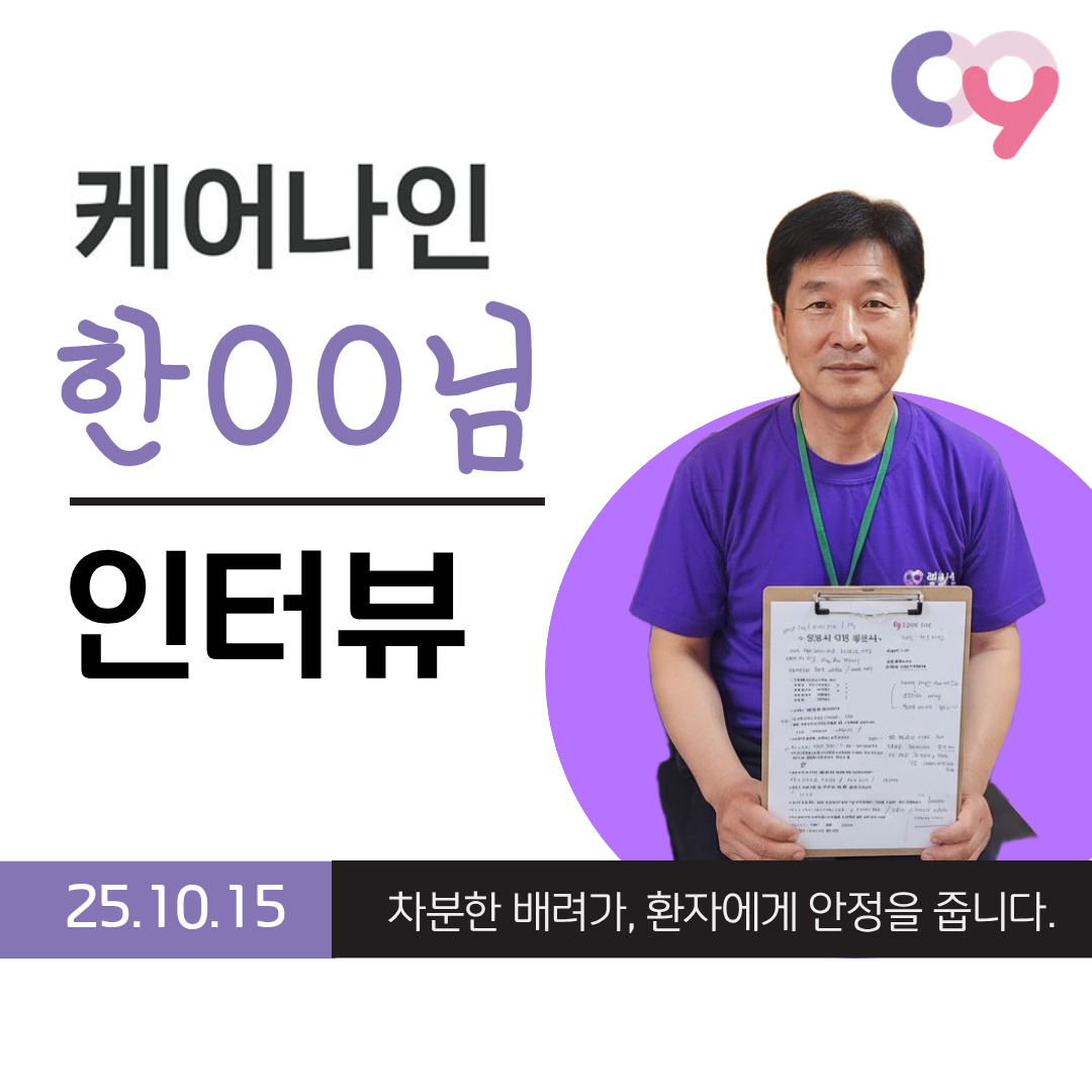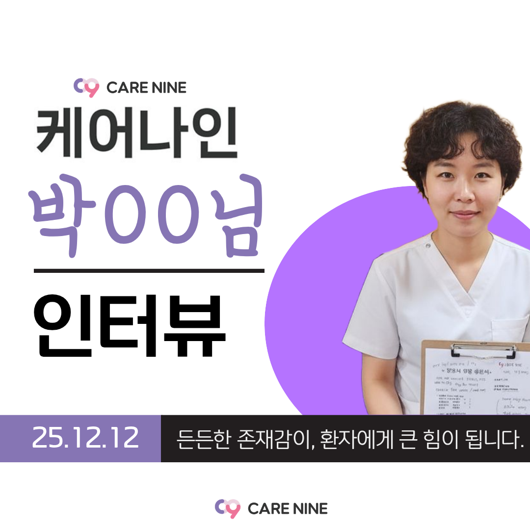 [ 25.12.16 케어나인 간병인 후기 ] 이대서울병원 최OO[ 25.12.16 케어나인 간병인 후기 ] 이대서울병원 최OO 따뜻한 배려가, 병실의 분위기를 바꿉니다. 최OO 간병인님 근무처 : 이대서울병원 나이 58세 / 자격증 : 요양보호사 간단한 자기소개 안녕하세요, 이대서울병원에서 근무 중인 58세 최OO 간병인입니다. 차분한 목소리와 선한 인상으로 환자분이 편안함을 느끼실 수 있도록 곁을 지키며, 항상 좋은 마음으로 성의껏 돌보는 간병을 중요하게 생각하고 있습니다. 조용하고 안정적인 태도로 환자와 보호자분들께 신뢰를 주는 분이에요. 한국으로 귀화한 뒤 현장 경험을 차근차근 쌓아왔고, 환자분의 상태에 맞춰 세심하게 배려하는 케어가 인상적인 간병인님입니다. “케어나인과 함께 느끼는 간병의 성취” ✔ 환자와 보호자가 따뜻하게 대해줄 때 ✔ 환자 상태가 점차 좋아지는 변화가 보일 때 ✔ 건강을 되찾아 병실을 나설 때 이 일을 계속하게 만드는 보람을 느낀다고 하셨어요. 케어나인 간병인 Real Interview Q. 근무하면서 가장 어려웠던 순간은 언제였나요? A. 섬망이나 치매 환자분이 깨어 있는 동안 계속 소리를 지르거나, 해줄 수 없는 요구를 반복하실 때가 가장 힘들었어요. 그래도 환자분을 대할 땐 늘 좋은 마음으로, 배려하며 최선을 다하려고 합니다. Q. 케어나인을 이용해보니 어떠셨나요? A. 앱으로 검색해서 가입했는데 친절했고, 금액도 만족스러웠어요. 간병인을 많이 배려해주는 느낌이라 앞으로도 계속 이용하고 싶어요. Q. 앞으로의 계획은 어떻게 되시나요? A. 일거리를 더 많이 받아 꾸준히 일하고 싶어요. 케어나인과 오래 함께 일하길 희망하고 있습니다.