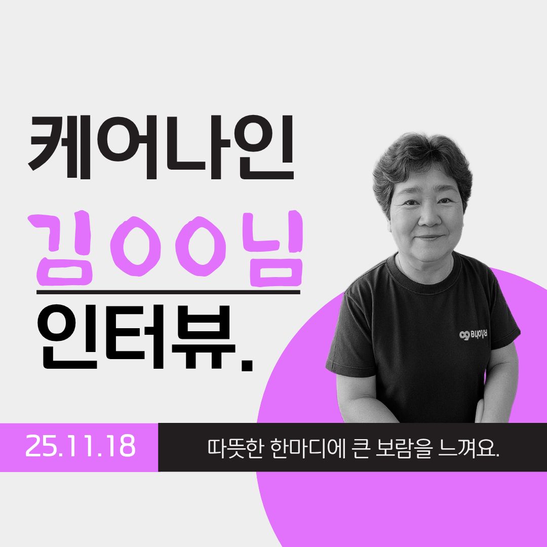 [ 25.11.18 케어나인 간병인 후기 ] 서울안강병원 김OO[ 25.11.18 케어나인 간병인 후기 ] 서울안강병원 김OO 🩺김OO 간병사님 🏥근무처 : 서울안강병원 나이 69세 / 자격증 : 간병사 민간자격증 꼼꼼하고 단정한 이미지, 섬세하고 베푸는 마음이 큰 간병사님이에요. 환자 생필품이나 반찬까지 챙겨드리는 따뜻한 성향을 갖고 계십니다. “케어나인과 함께 느끼는 간병의 성취” ✔ 환자분이 건강하게 퇴원하실 때 ✔ 환자·보호자가 까다로운 상황에서도 본인의 노력으로 신뢰를 얻을 때 ✔ ‘베푸는 일’을 통해 본인도 마음의 회복을 느낄 때 큰 보람을 느낀다고 하셨어요. 케어나인 간병인 Real Interview 𝐐. 근무하면서 가장 힘들었던 점은 무엇인가요? 𝐀. 그동안은 가벼운 상태의 환자를 주로 케어해 힘듦이 없었어요. 하지만 케어나인에서 편마비 환자와 매칭되었을 때 처음엔 까다로워 어려움이 있었지만, 보호자 요청과 환자분과의 신앙적 공감이 있어 지금은 이 정도 환자는 케어할 수 있겠다는 자신감이 생겼다고 해요. 𝐐. 보호자분들은 보통 어떻게 대해주시나요? 𝐀. 대부분 친절하고 잘 대해주시며, 간병사님의 베푸는 마음을 좋게 봐주셔서 감사해하신다고 해요. 𝐐. 보람을 느낄 때는 언제인가요? 𝐀. 환자분이 건강하게 퇴원하실 때, 그리고 본인이 노력한 만큼 환자·보호자가 마음을 열어줄 때 가장 큰 보람을 느낀다고 하셨어요. 𝐐. 간병 일을 오래 하고 싶은 이유가 있나요? 𝐀. 네. 꾸준히 환자들과 소통하며 오래 일하고 싶습니다. 𝐐. 간병 일을 준비하는 분들에게 조언한다면? 𝐀. 본인의 성향과 적성이 맞는지가 무엇보다 중요해요. 또한 부모님을 대하는 마음으로 봉사하는 자세가 필요하다고 조언해주셨어요.