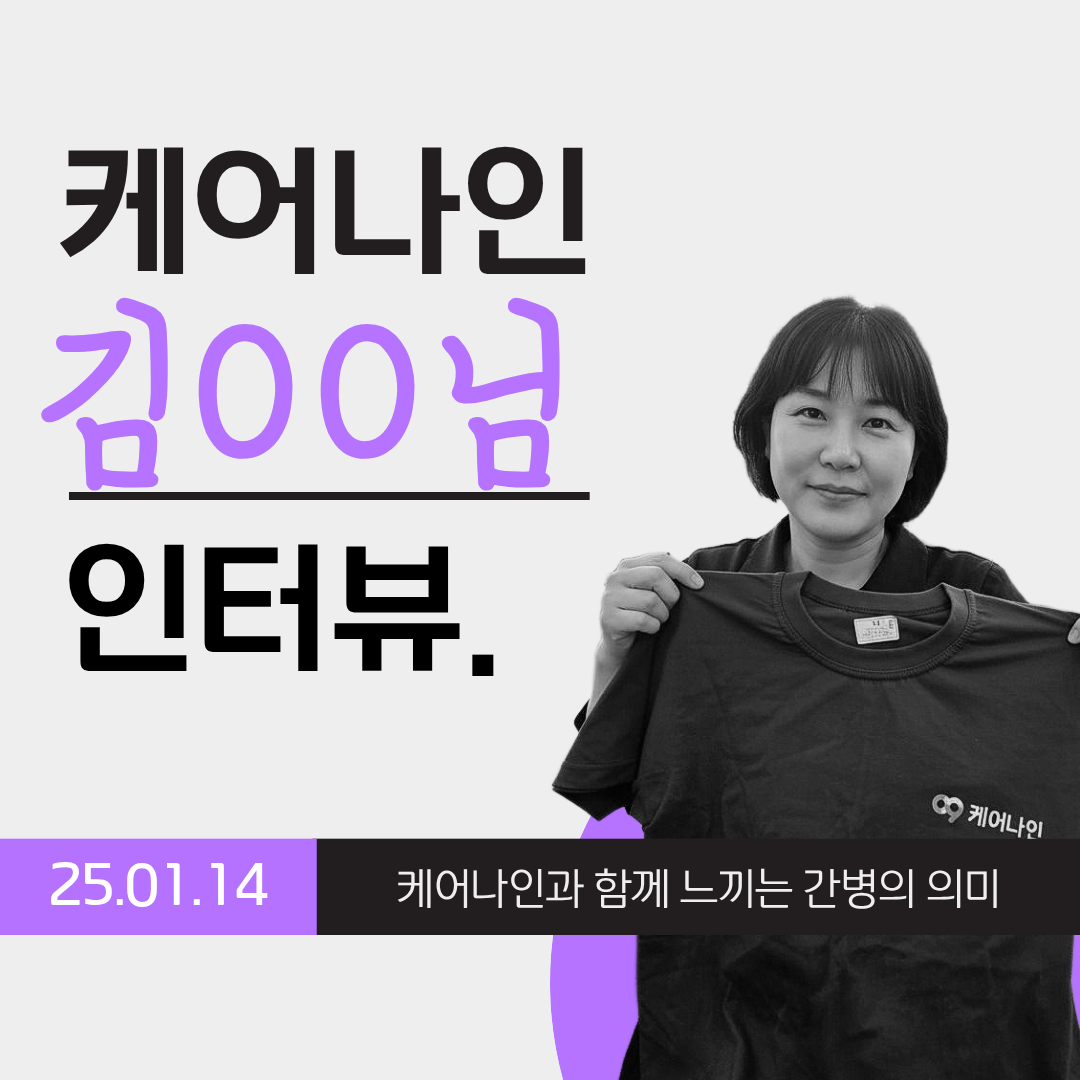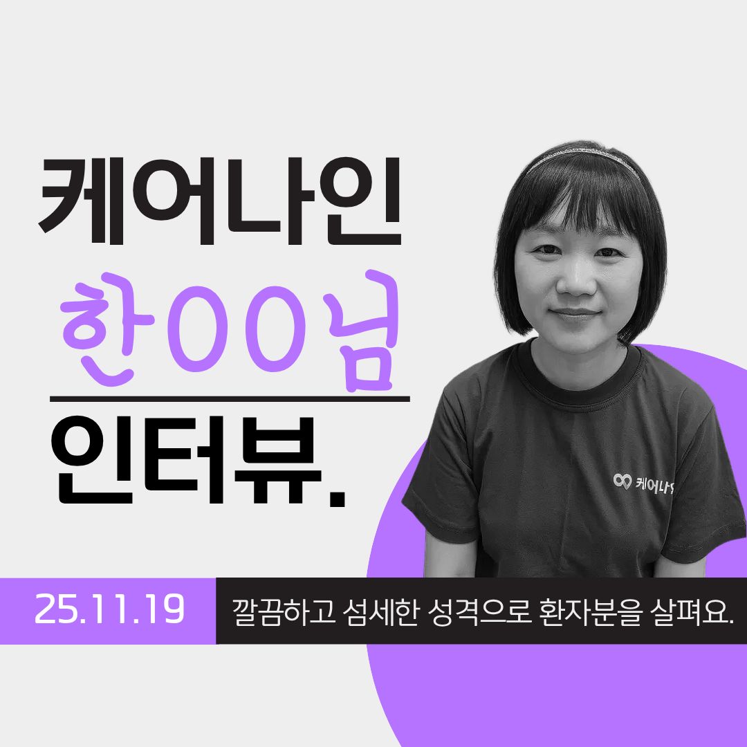 [ 25.11.19 케어나인 간병인 후기 ] 서울대학교병원 한OO[ 25.11.19 케어나인 간병인 후기 ] 서울대학교병원 한OO 🩺한OO 간병사님 🏥근무처 : 서울대학교병원 나이 49세 / 자격증 : 요양보호사 깔끔하고 섬세한 성격, 아담한 체구에도 책임감이 강한 간병사님이에요. 환자에게 정성과 집중으로 최선을 다하는 마음가짐을 가지고 있으며, 보호자분들이 근무 모습을 보고 끝나면 자신을 꼭 요청할 정도로 신뢰가 깊습니다. “케어나인과 함께 느끼는 간병의 성취” ✔ 환자분이 건강하게 회복해 퇴원할 때 ✔ 환자·보호자가 존중하며 친절하게 대할 때 ✔ 진심을 다한 케어가 감사 인사와 격려로 돌아올 때 큰 보람을 느낀다고 하셨어요. 케어나인 간병인 Real Interview 𝐐. 근무하면서 가장 힘들었던 점은 무엇인가요? 𝐀. “쉬고 있으라”는 말을 들을 때가 가장 힘들어요. 저는 무언가 집중해서 해야 마음이 편하기 때문이에요. 일반 환자보다 중증·와상 환자를 선호하는 이유도 할 일이 많아 오히려 더 잘 맞기 때문이라고 하셨어요. 𝐐. 보호자분들은 보통 어떻게 대해주시나요? 𝐀. 대부분 매우 친절하시고, 섬세한 케어에 감사 인사를 자주 전한다고 해요. 𝐐. 보람을 느낄 때는 언제인가요? 𝐀. 환자분이 사망하지 않고 회복해 퇴원할 때, 그리고 환자와 보호자가 존중과 신뢰를 보여줄 때 가장 큰 보람을 느낍니다. 𝐐. 앞으로도 간병 일을 장기적으로 하고 싶으신가요? 𝐀. 네. 상황에 따라 단기와 장기를 병행하며 꾸준히 이어가고 싶다고 하셨어요. 𝐐. 간병 일을 준비하는 분들에게 조언한다면? 𝐀. 시간만 때우는 마음으로는 절대 안 되고, 부모님을 대하는 마음으로 진심을 다해야 한다고 강조하셨어요. “내가 아는 만큼 환자를 잘 대우하면, 그만큼 감사함과 응원이 돌아옵니다”라는 말을 전해주셨어요.