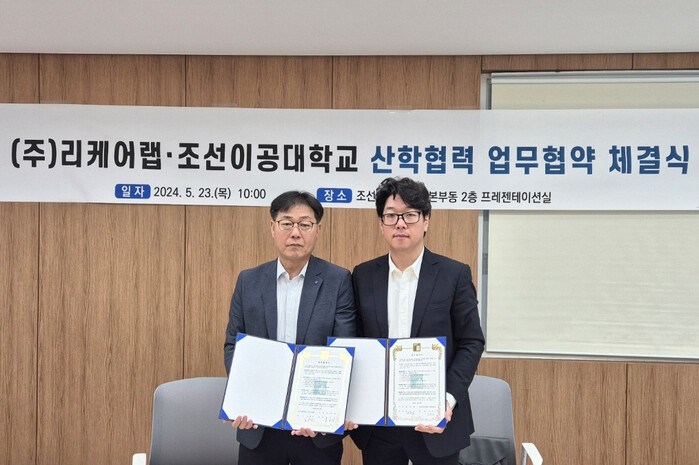 간병인 매칭 플랫폼 기업인 ㈜리케어랩이 지난 23일 조선이공대학교와 해외 간병인 양성을 위한 양해각서(MOU)를 체결했다.