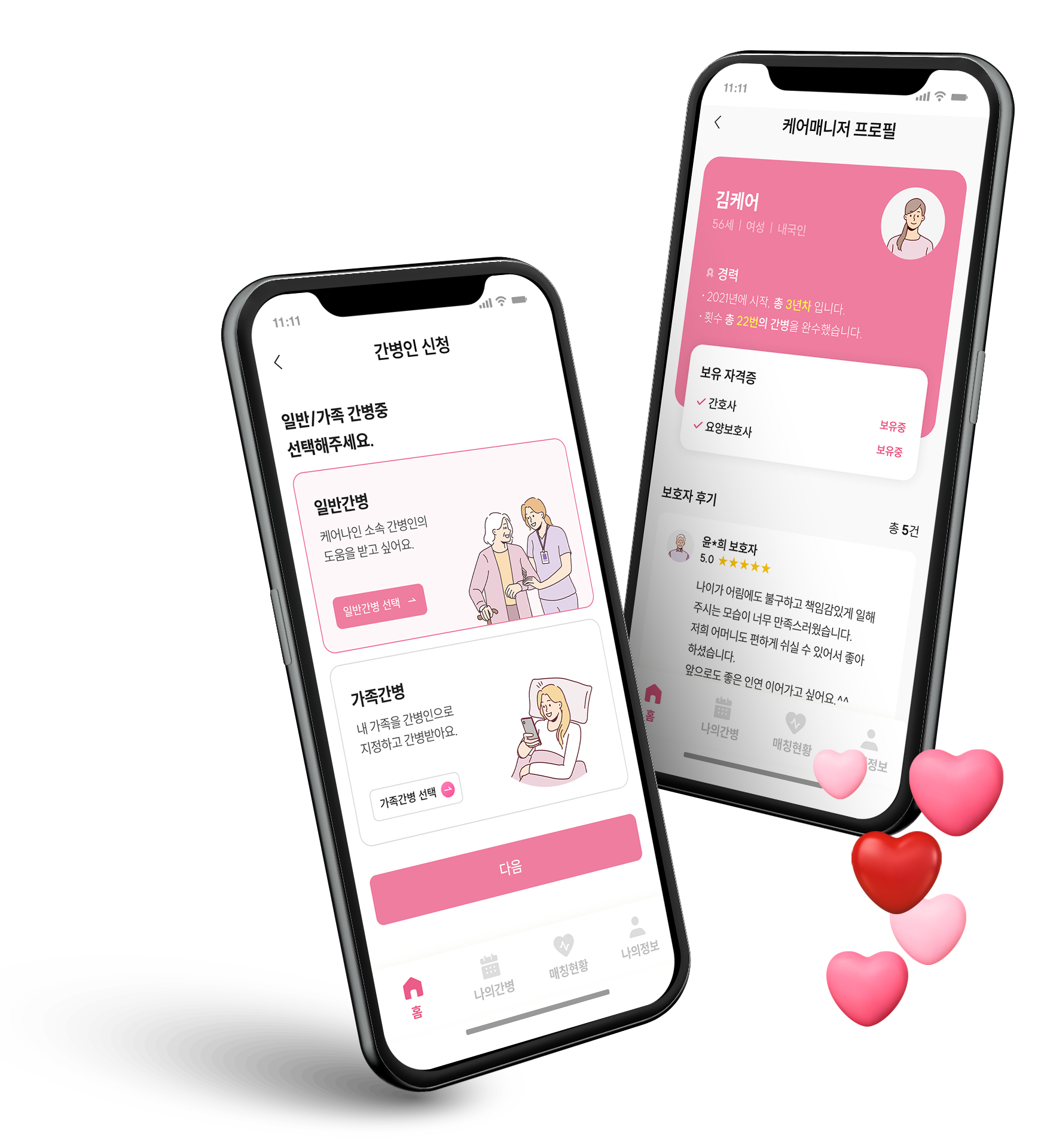 간병인을 찾는 보호자도, 간병을 제공하는 분들도 서로 믿고 연결될 수 있도록, 케어나인은 의료진의 눈으로 설계된 새로운 기준이 되고자 합니다.